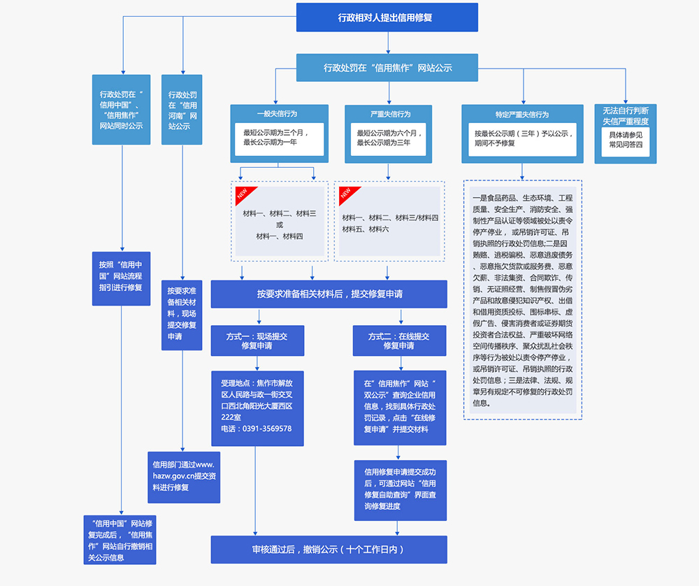 | 材料四 | 由行政处罚机关出具(原件照片、扫描件,须加盖申请单位和处罚机关公章) | 《行政处罚信息信用修复表》仅用于由原行政处罚机关出具修复决定时使用,请准确填写完整并加盖公章。 | 模板下载 |