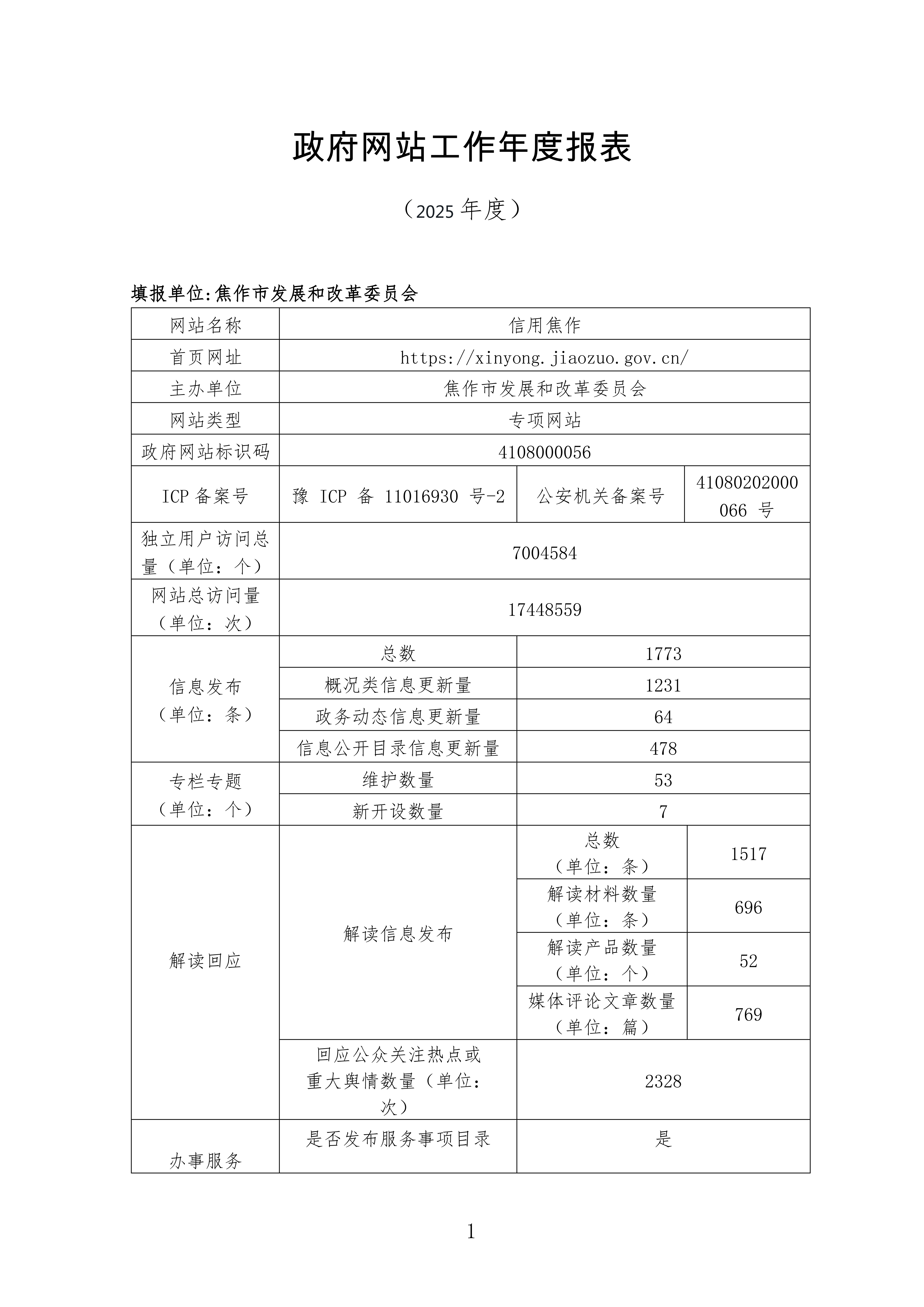 信用焦作年度工作报表公示(2025年度)